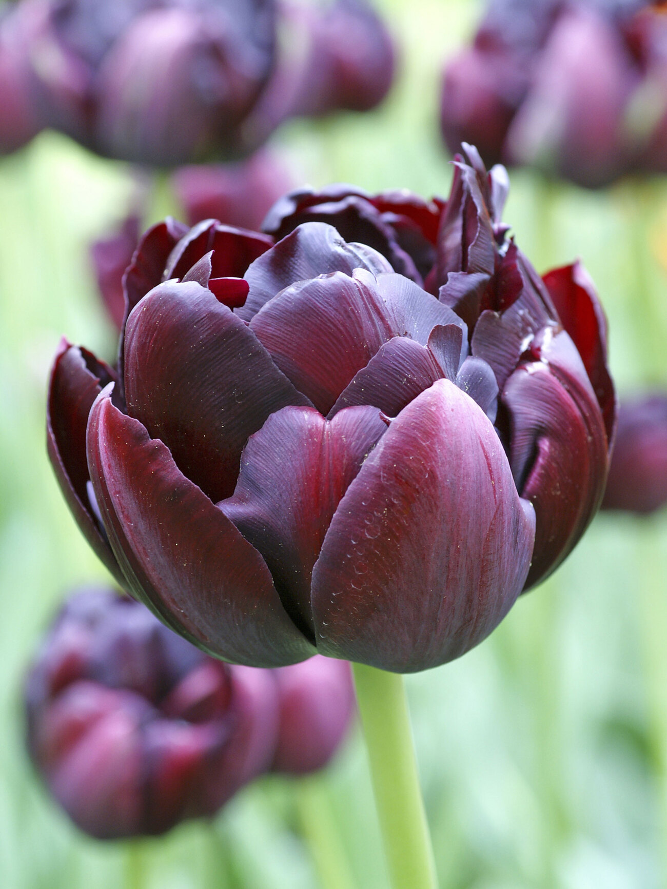 - Tulip Black Hero — A dashing, dark and handsome Double Late Tulip that can look black in lower light and shadows. Source: Bluestone Perennials
