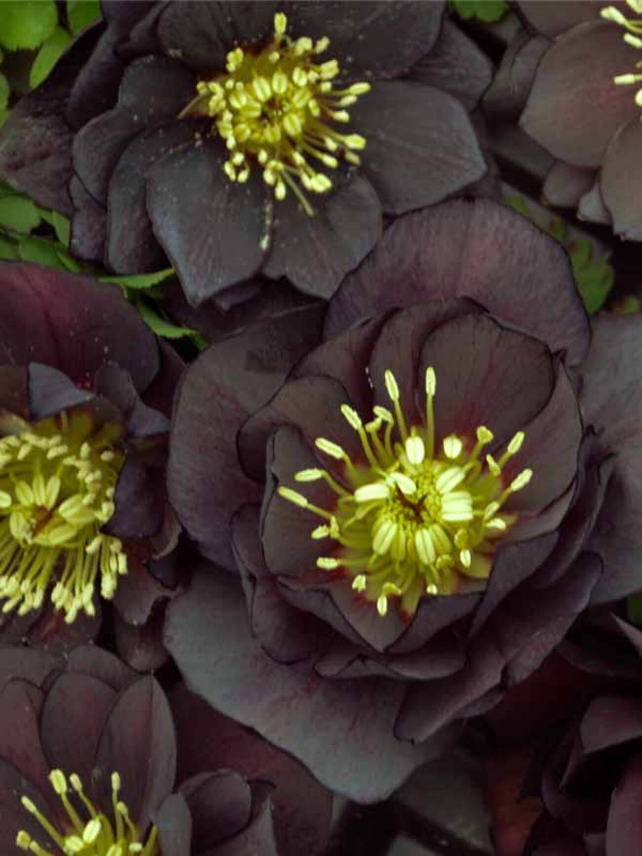 - Onyx Odyssey Hellebore — The full double blooms are intensely purplish-black. Source: Burpee