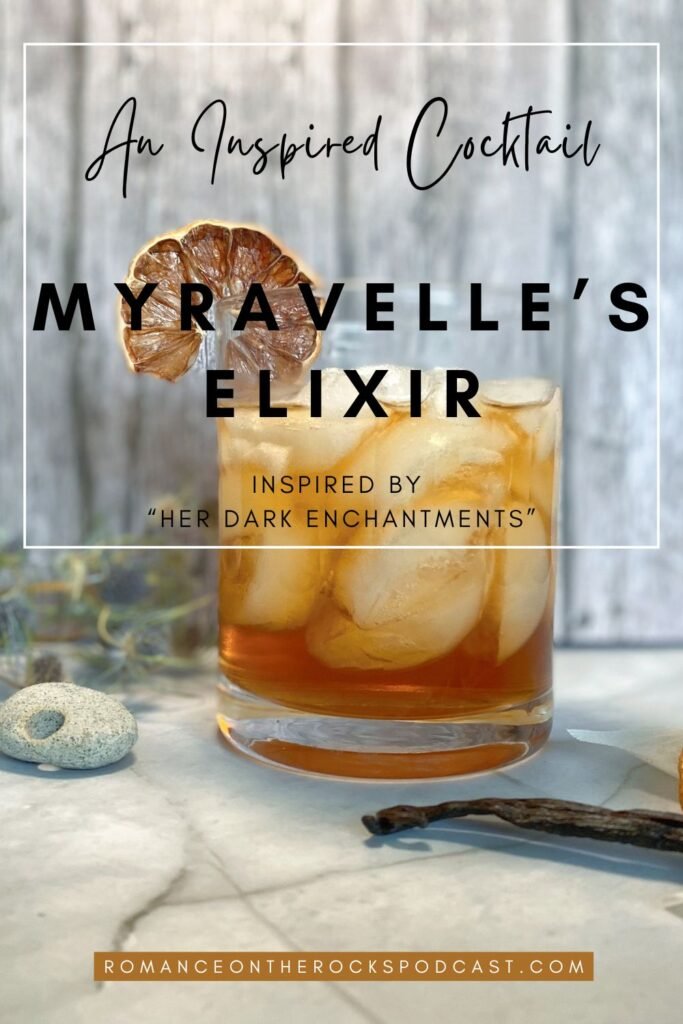 I created this cocktail for Season 2 Episode 12: A Midsummer Nightmare. I’m calling it Myravelle’s Elixir and it’s named after and inspired by the character Myravelle from the book Her Dark Enchantments by Rosalyn Briar. Which is the book I read for the podcast episode. (You can read my book review here.)