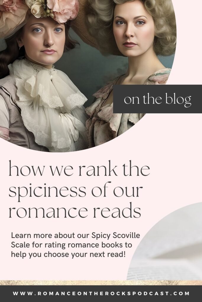 In each of our regular podcast episodes for Romance on the Rocks, we give our books a Spicy Scoville Scale rating. This can help our fellow hopeless romantics and bookish biddies when choosing what romance novels to read. Do you like your books dark & steamy? Or do you prefer something a little more demure & tame with low heat? We’ve got you covered!