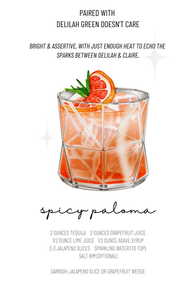 A sapphic rom-com about second chances, found family, and falling hard when you least expect it. These cocktails reflect Delilah’s fierce wit, Claire’s layered warmth; and the messy, gorgeous chaos of falling in love in your hometown.